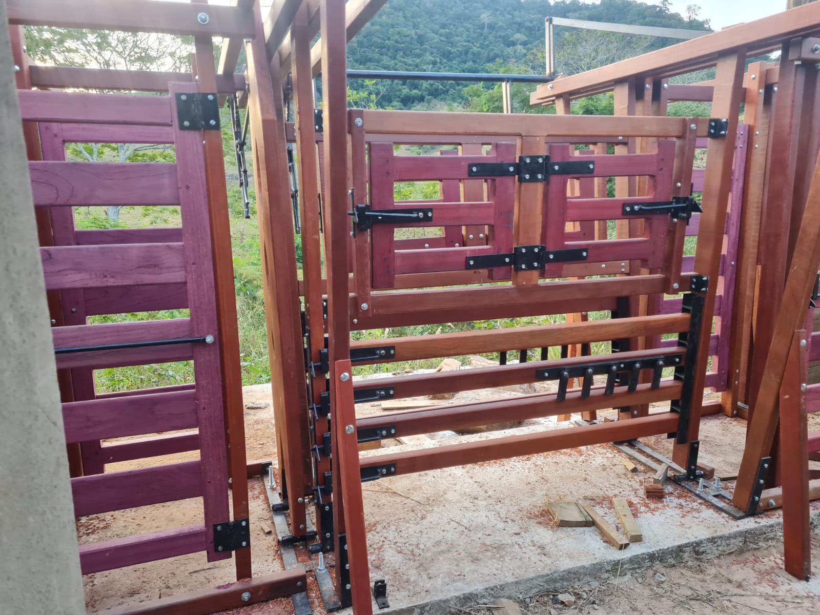 - Capacidade para um animal com deslizamento macio e preciso, sem risco de desencaixe, o que facilita o manejo sem exigir força do operador, com travamento por cima e com parafusos zincados, formando um conjunto de alta resistência.